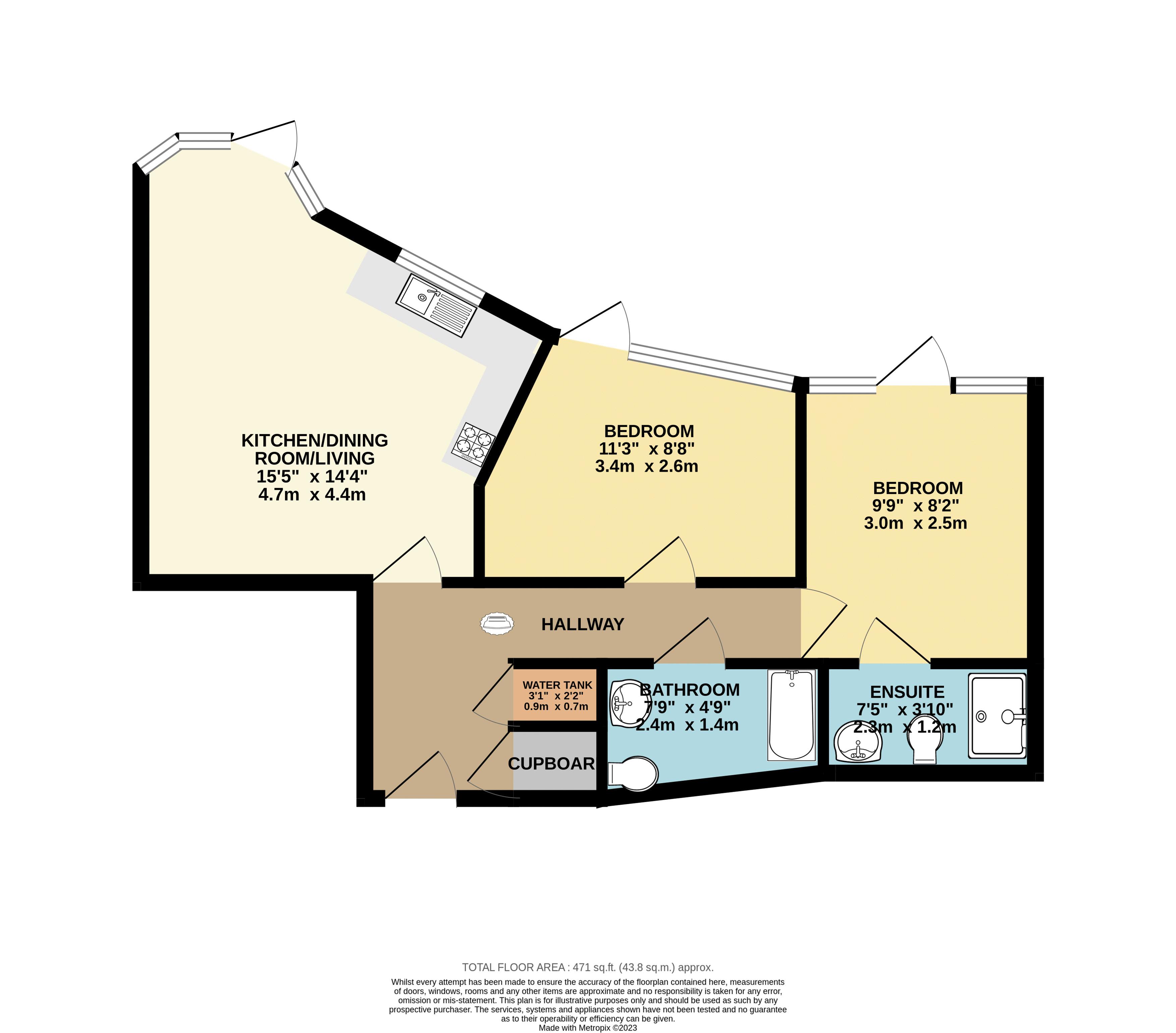 The accommodation comprises open plan living to include lounge, dining area and kitchen with appliances; two double bedrooms, en-suite shower room and second bathroom.