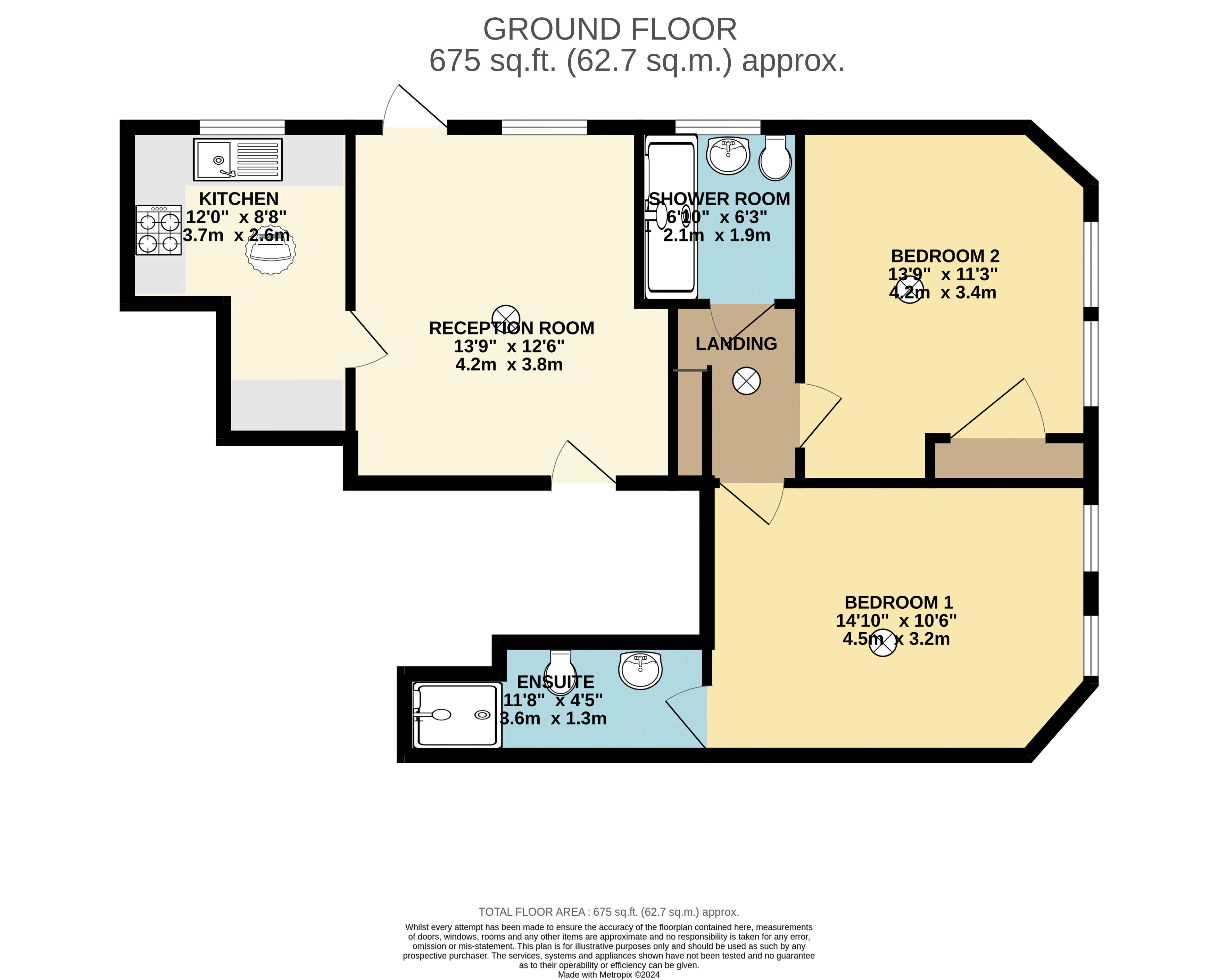 The accommodation is accessed via a communal entrance with stairs leading to the first floor and comprises reception room, kitchen with appliances, main bedroom with en-suite shower room, second double bedroom and family bathroom.